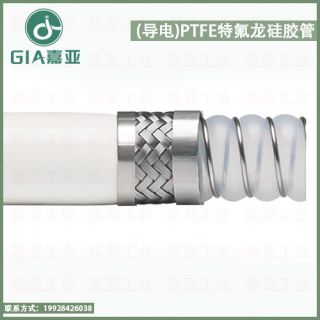 内层:浅波纹半透明PTFE软管 中层:304SS不锈钢螺旋钢丝和编织网 外层:白色铂金硫化硅胶 工作温度:-50℃ 到 +180℃ 应用 (导电)PTFE特氟龙硅胶管,适用于制药、化工、食品、化妆品、半导体和新能源等众多领域,可以输送和抽吸包括浓酸碱、…