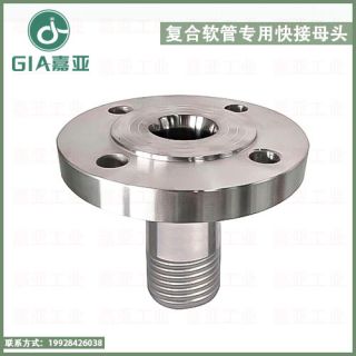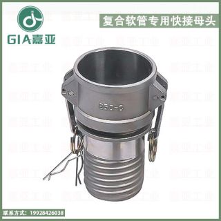 头部为CAMLOCK母接头,可与A-A-59326和DIN 2828标准接头互配使用,尾部用来与复合软管相连接。可提供其他材质的接头垫圈