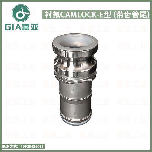 凸轮锁紧快速接头CAMLOCK E型,采用食品级PFA颗粒在不锈钢本体上烧结而成,表面平整光滑,符合卫生级结构,可耐全真空负压,温度范围为:-60℃至+230℃。可与A-A-59326和DIN 2828标准接头互配使用,带齿管尾使得与软管内壁连接更紧密,不易脱落。